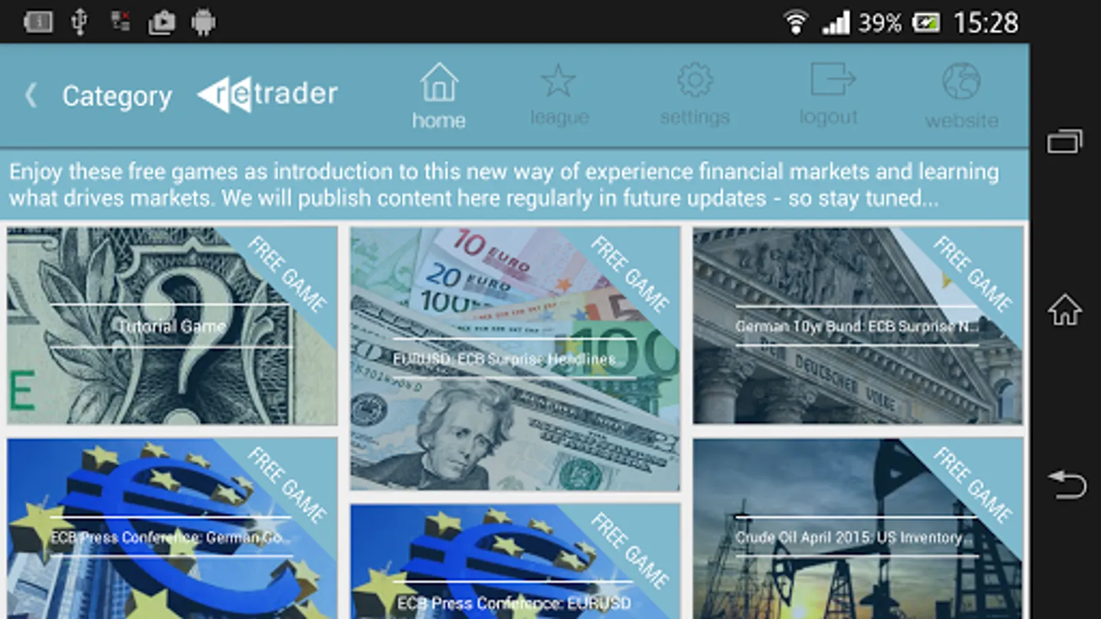 ReTraders can enter into global trading competitions or use the APP to keep up-to-date with the current events by choosing to sign up to our subscriptions, which will give you our analysis in the form of mini-games on a weekly basis.