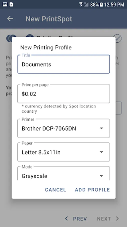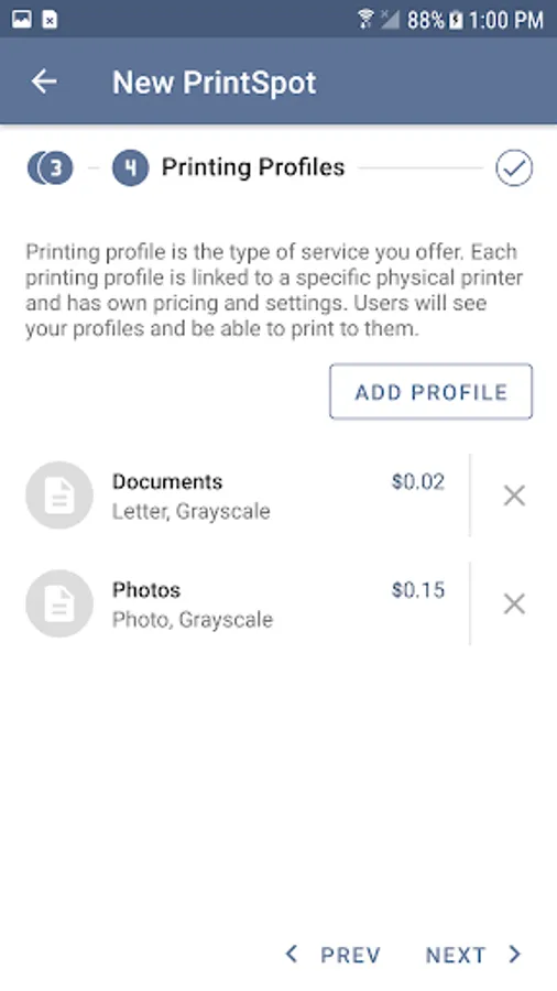 Once you register, you’ll need to indicate where you provide printing, what king service(s) you offer and for how much. We call this Printing Profiles. Each profile is linked to a printer and you can setup any per-page pricing you like, including free. We don’t take a cut of this. Instead, if you like our service, you’ll need to subscribe for the fixed amount per-month.