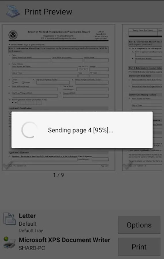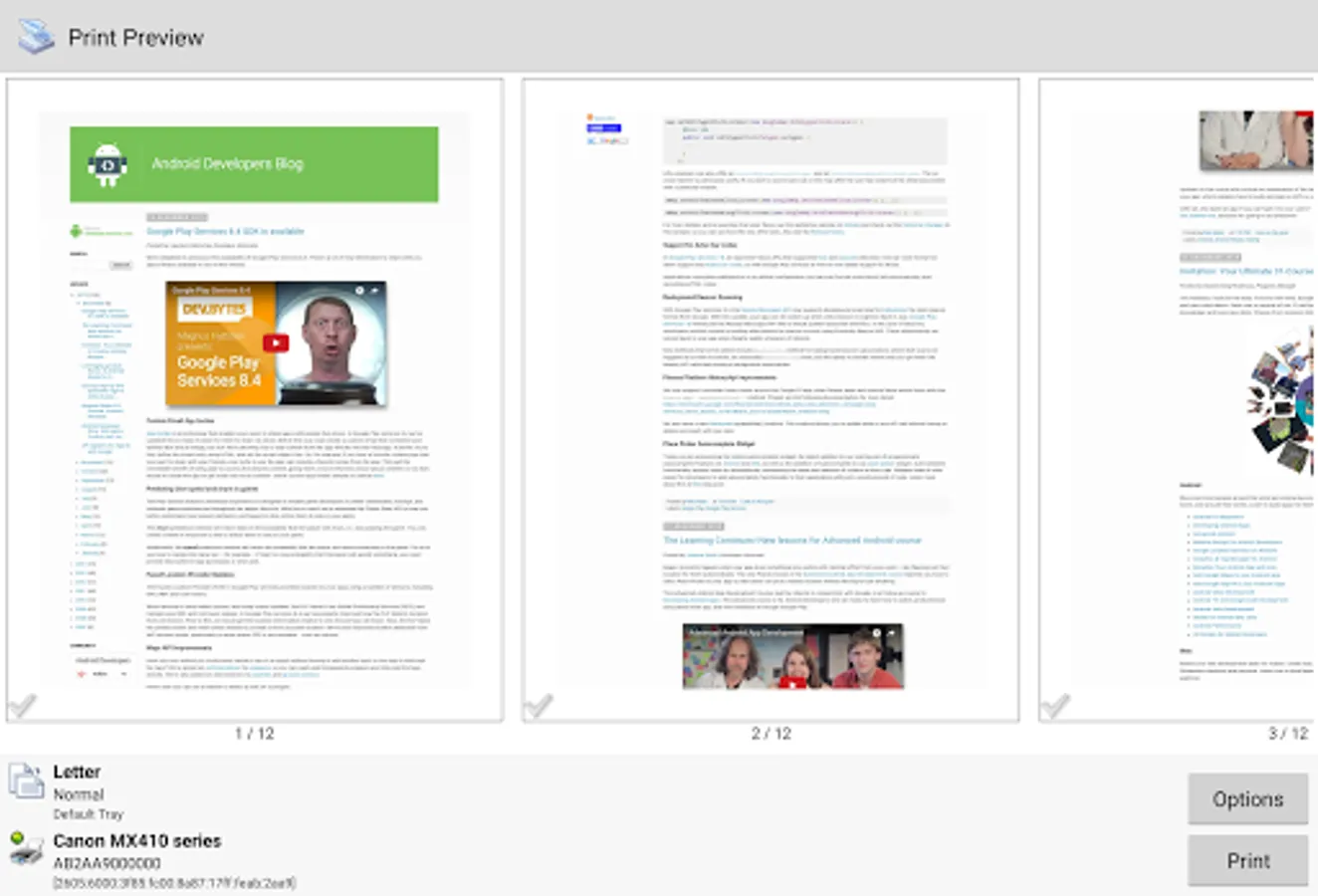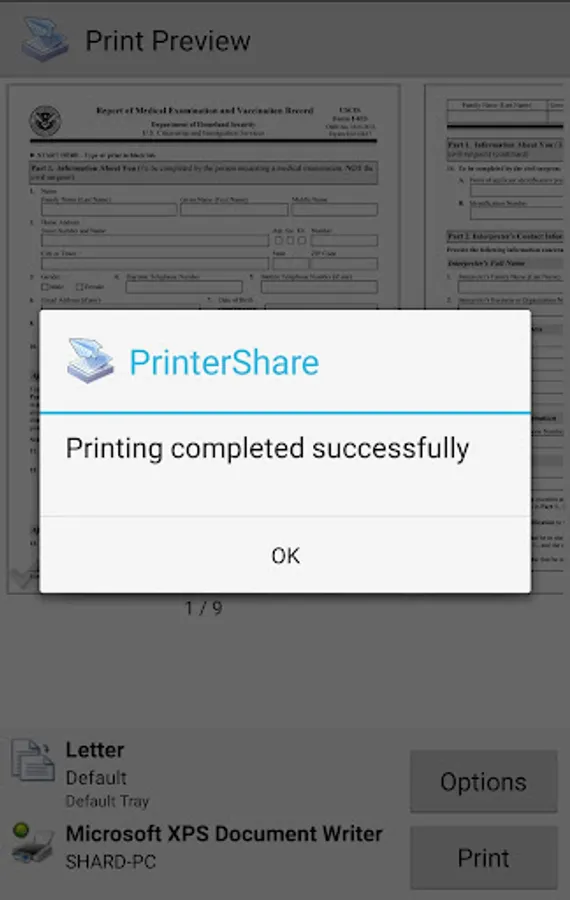 With PrinterShare you can easily print images and photos (JPG, PNG, GIF), emails (from Gmail) and attachments (PDF, DOC, XLS, PPT, TXT), contacts, agenda, web pages (HTML), and other digital content from device memory, cloud storage providers such as Google Drive, One Drive, Box, Dropbox and other applications using Share action. You even can print text messages for trial or legal matters!