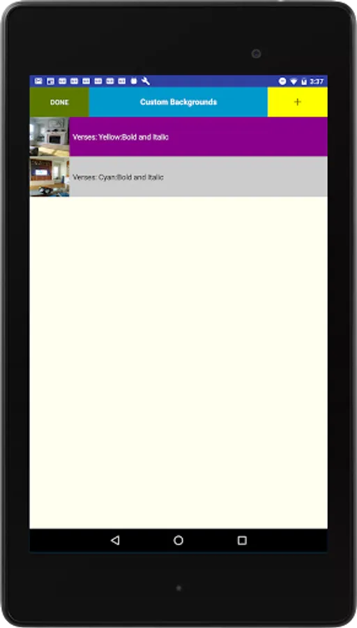 (d) You may specify the app to depict custom verses only, verses provided by the app only, or both.