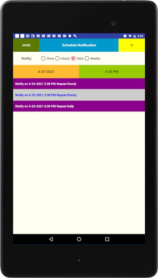 Added to the above, you may schedule the app to post one or more verses to your device on an hourly, daily or weekly basis. For example, you may schedule the app to send a verse to your device in the morning, afternoon and/or evening, daily.