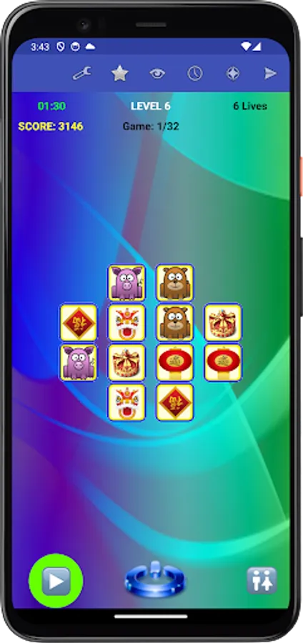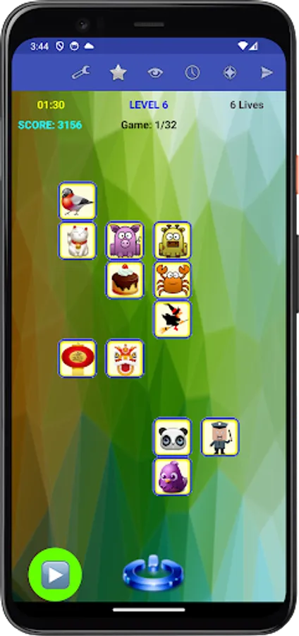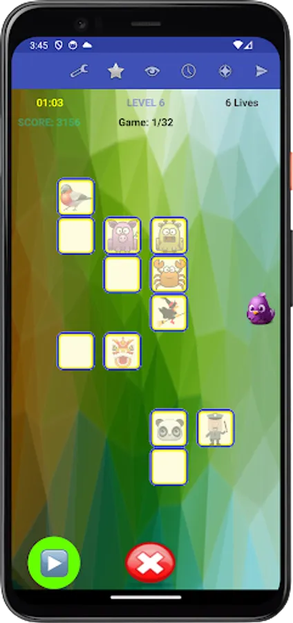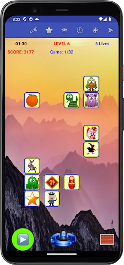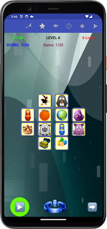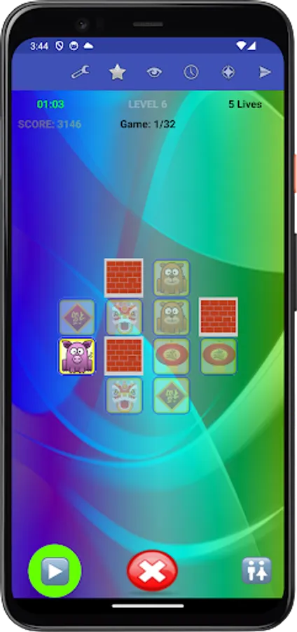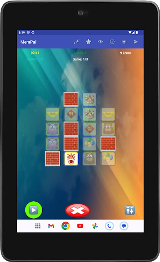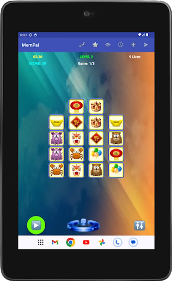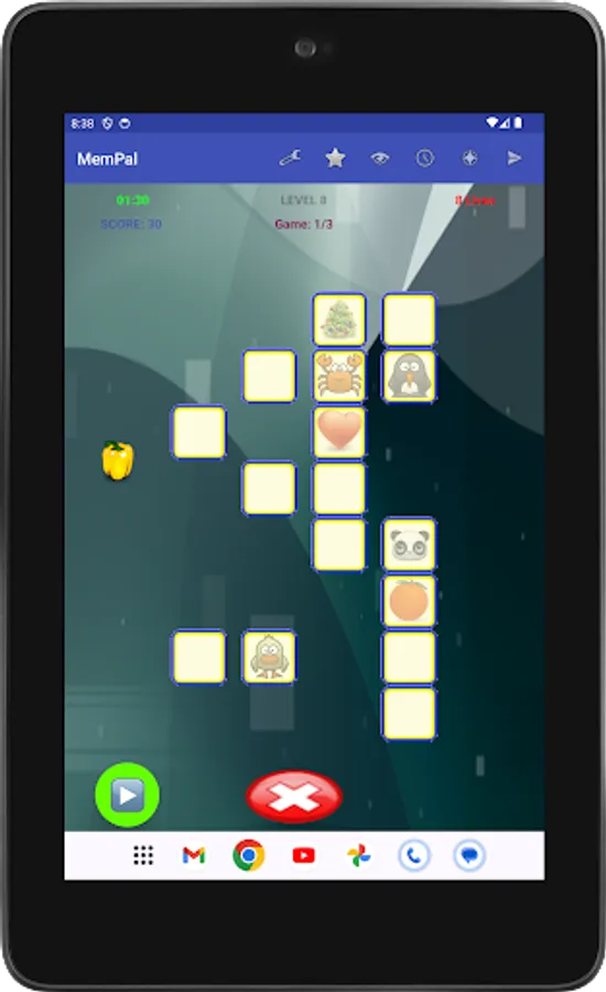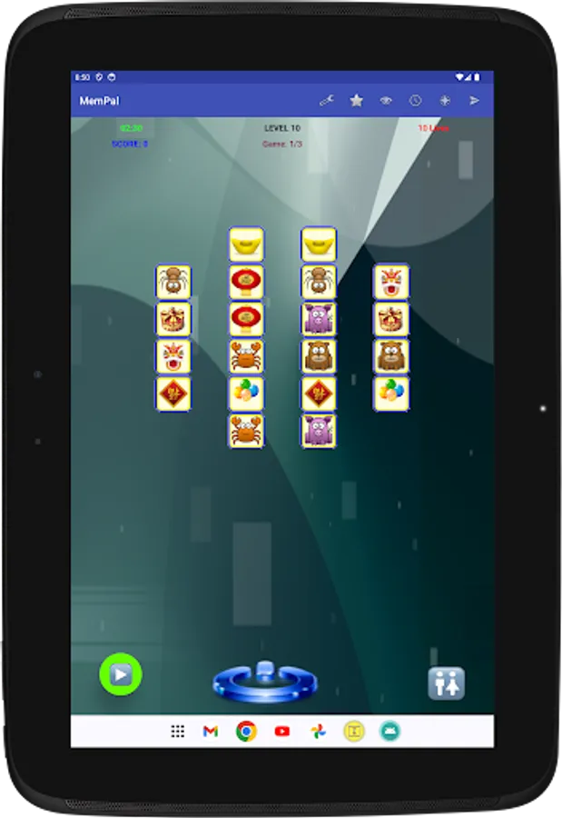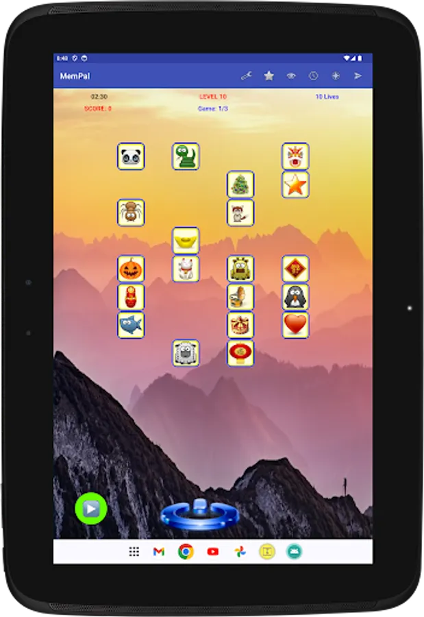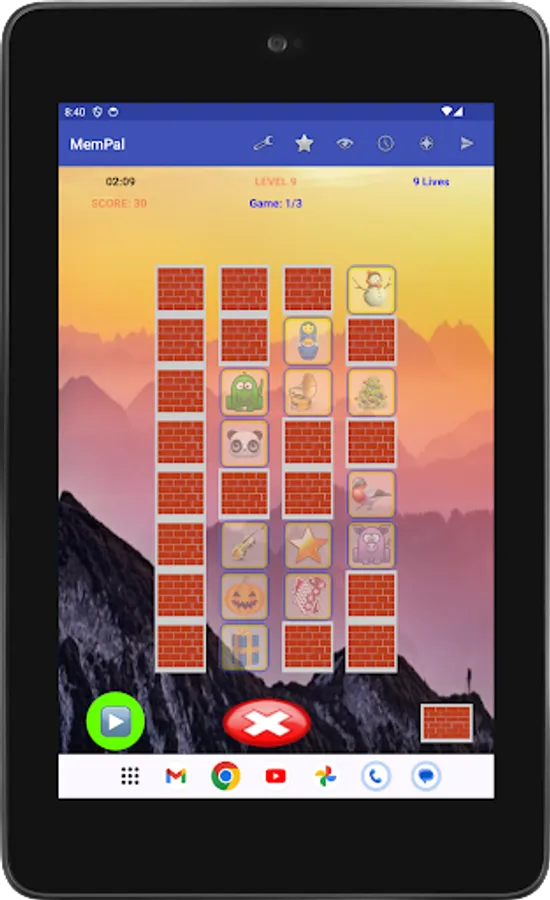 Specifically, each game presents you with a set of figures randomly assigned to tiles. To win the game, you need to remember the placement of figures on their associated tiles, and move each figure, with your finger, back to its corresponding tile, or tap a figure's tile to have the app place the figure to that tile, within the allocated time and lives for the game.