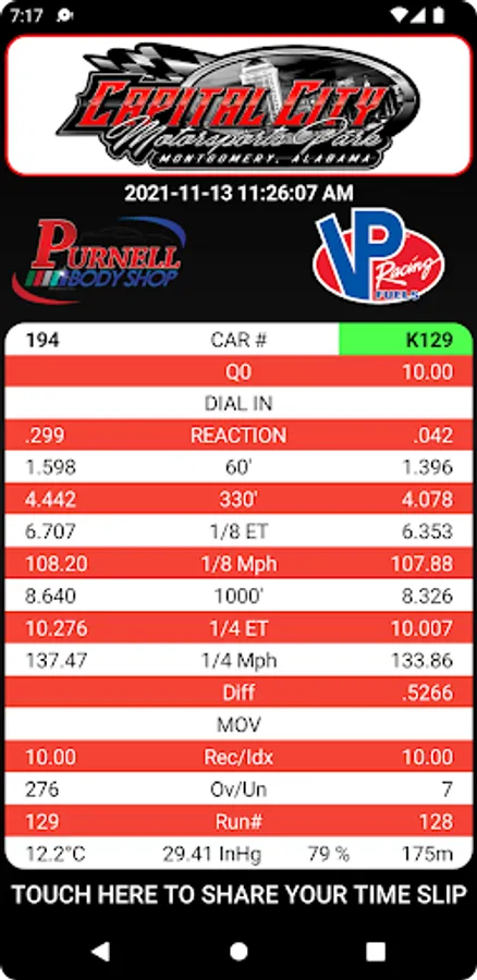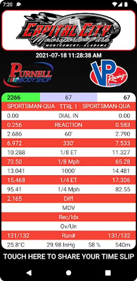 Review your drag racing time slips with our app when racing at Capital City Motorsports Park.