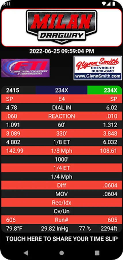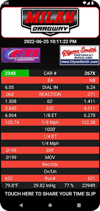 Review your drag racing time slips with our app when racing at Milan Dragway.