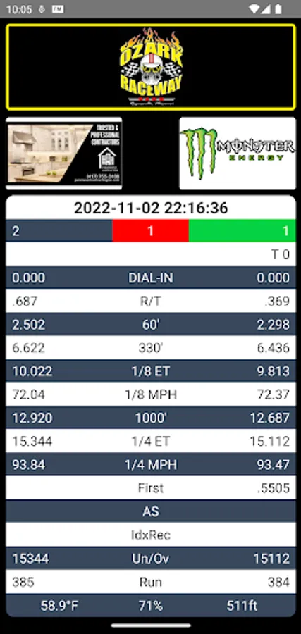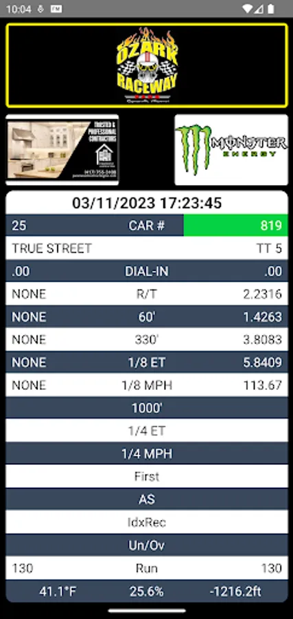 Review your drag racing time slips with our app when racing at Ozark Raceway Park race track.