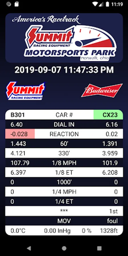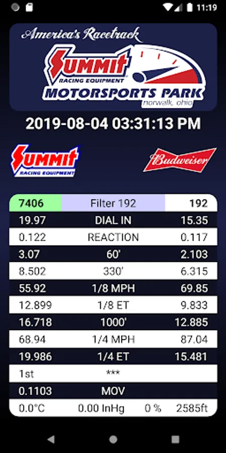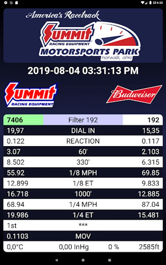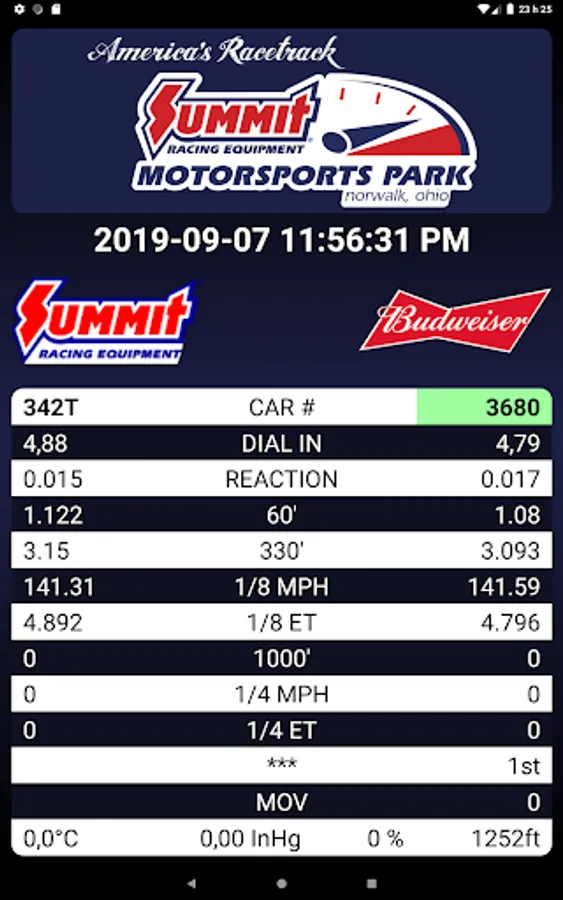 Review your drag racing time slips with our app when racing at the Summit Motorsport Park Drag Racing track.