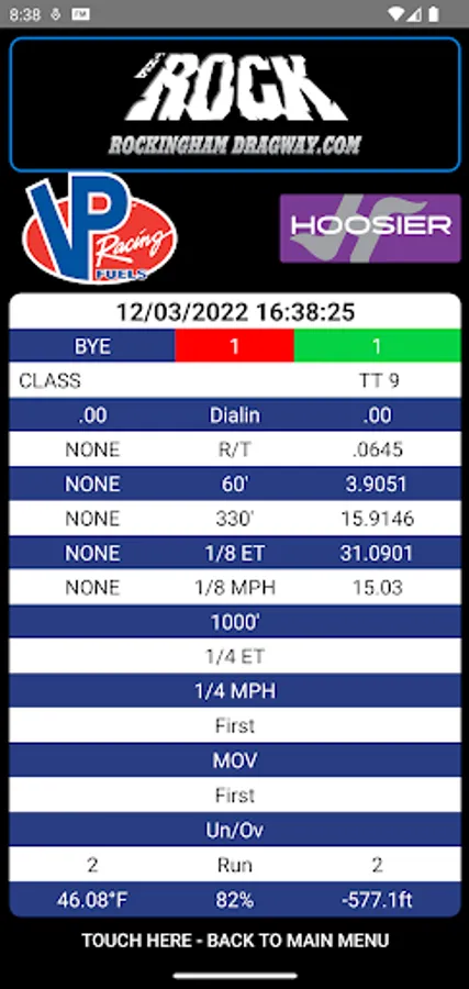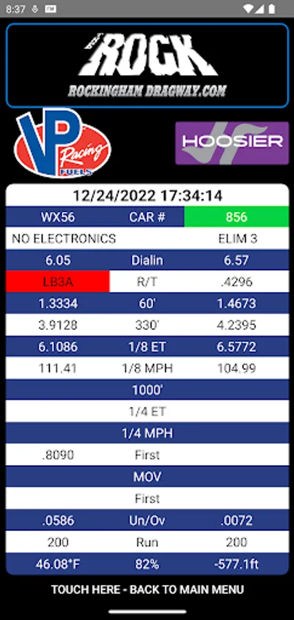 Review your racing time slips with our app when racing at Rockingham Dragway race track.