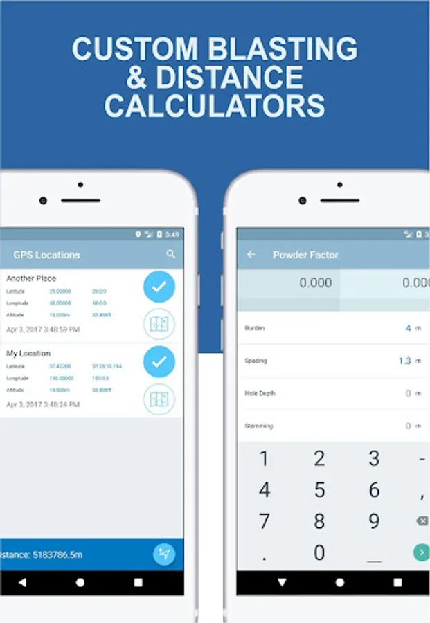 - Custom blasting calculators include: powder factor, airblast prediction, rock and explosive charge per blasthole, wet hole, ground vibration prediction, scaled distance, GPS and distance to the nearest structure.