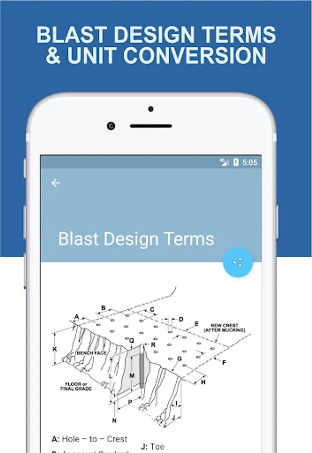 - Unit conversions, blast design terminology, blasting definitions and formulas are all readily available.
