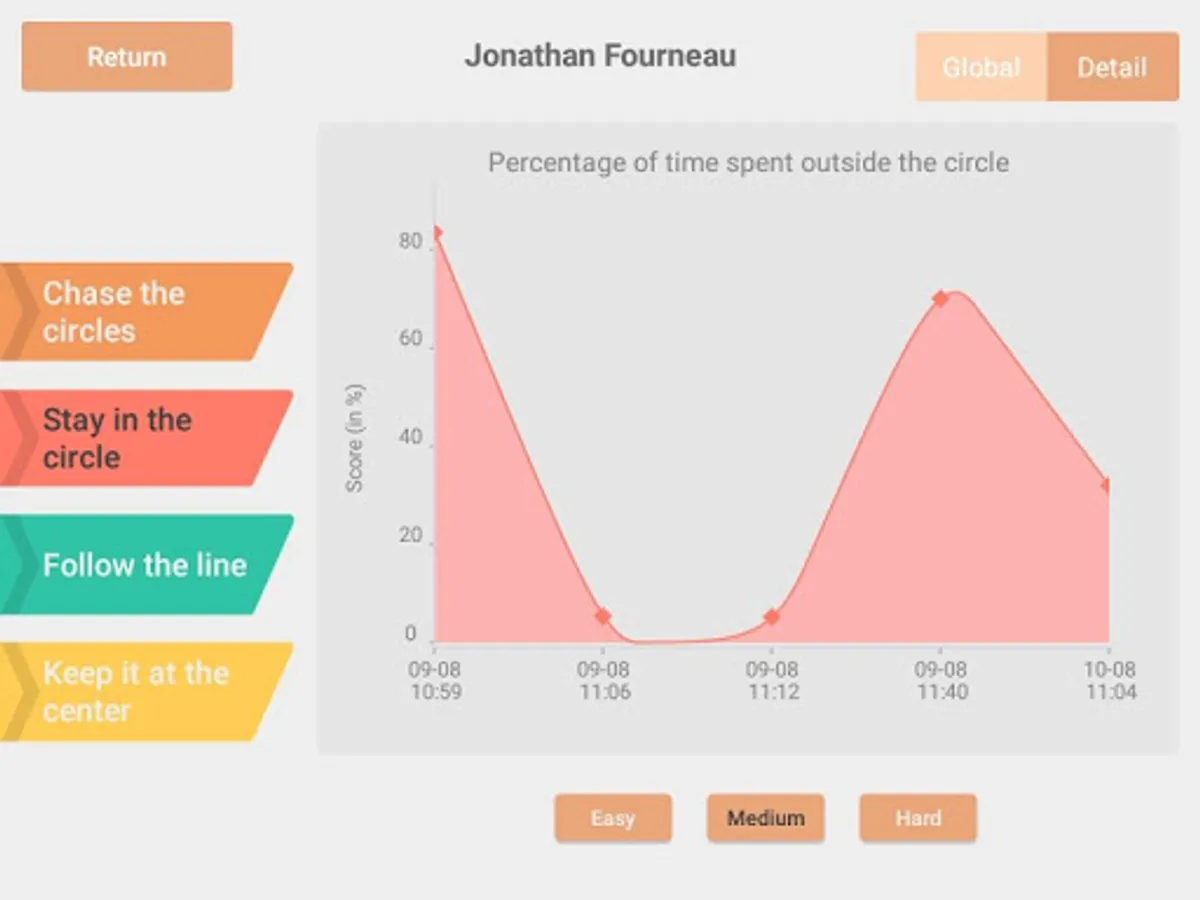 You can configure settings: the size of the ball, the speed of the ball, etc., in order to make each exercise configurable and customizable.