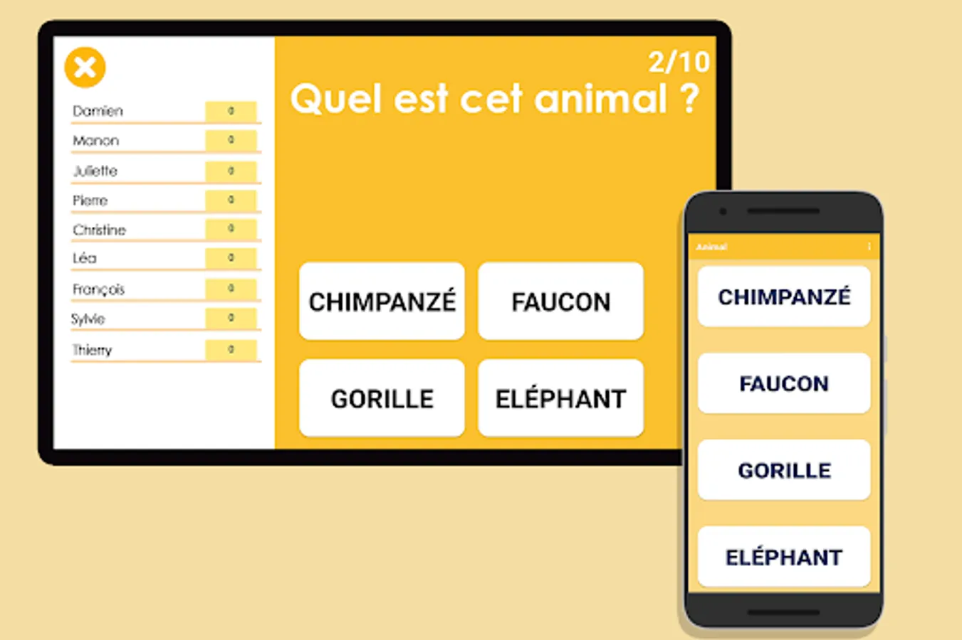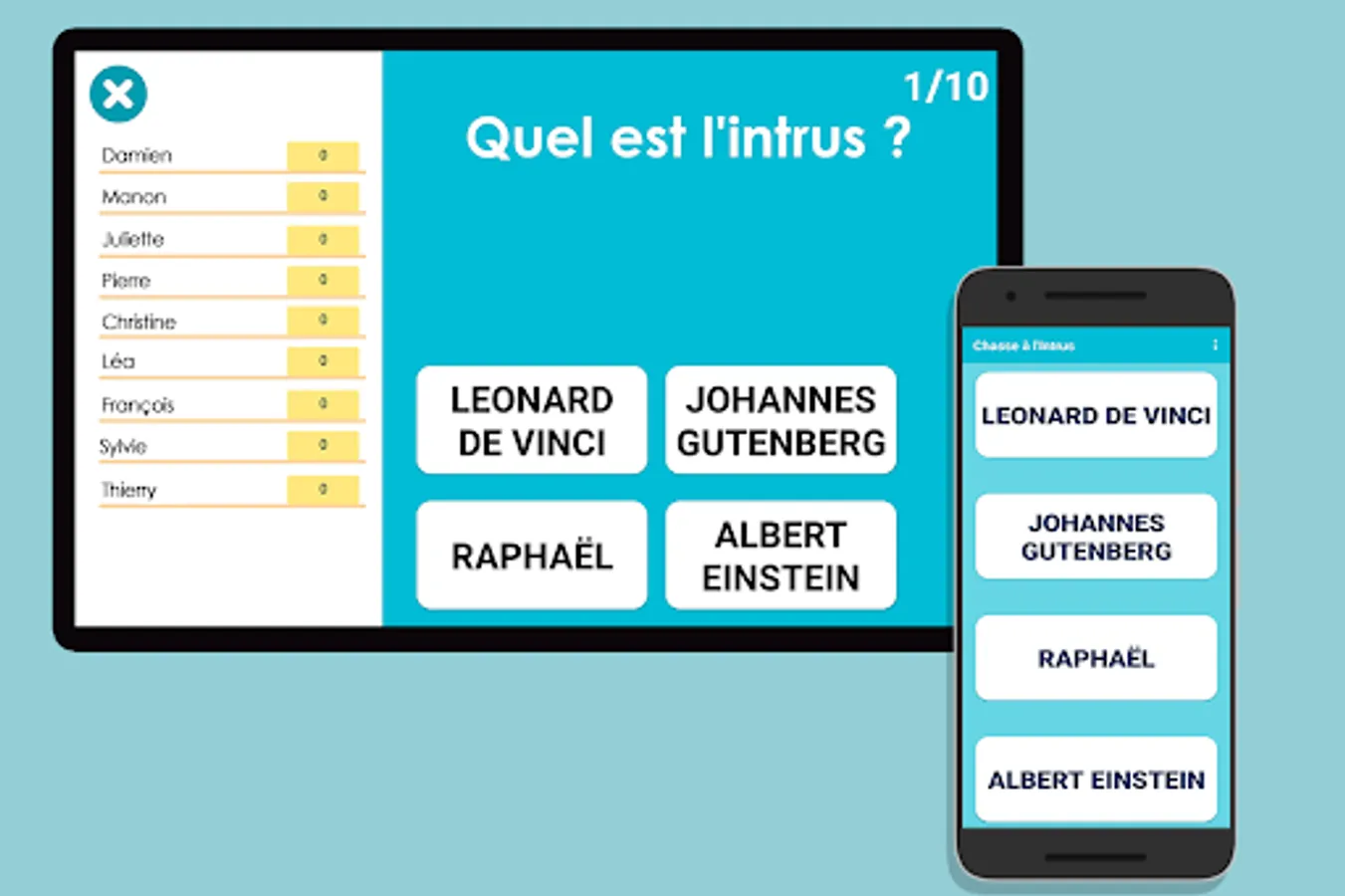 Enjoy several games such as general knowledge quiz, a hunt for the intruder, a game or a music recognition tennis and more to come!
