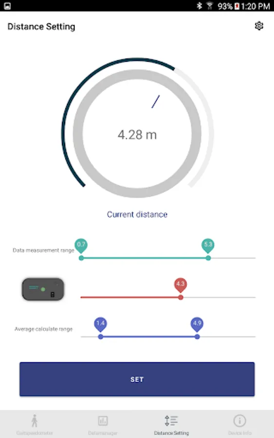 An application for controlling gaitspeedometer to measure the degree of senility developed by DyPhi. To use this application, you need gaitspeedometer product from DyPhi.