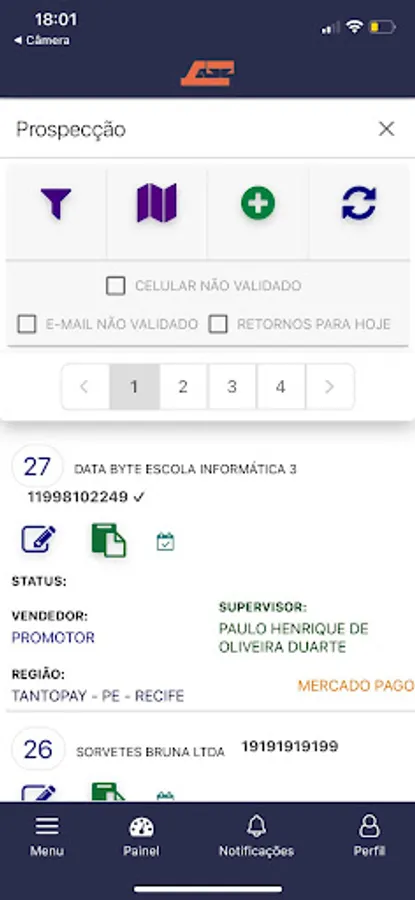 Through this app, your door-to-door sales team points out all your prospecting and sales for the day, with the help of integration with Google to search for data from the prospected establishment, other features: phone validation via whatsapp, visualization of the leeds to be visited by map and use of the waze browser to move to the selected customer.