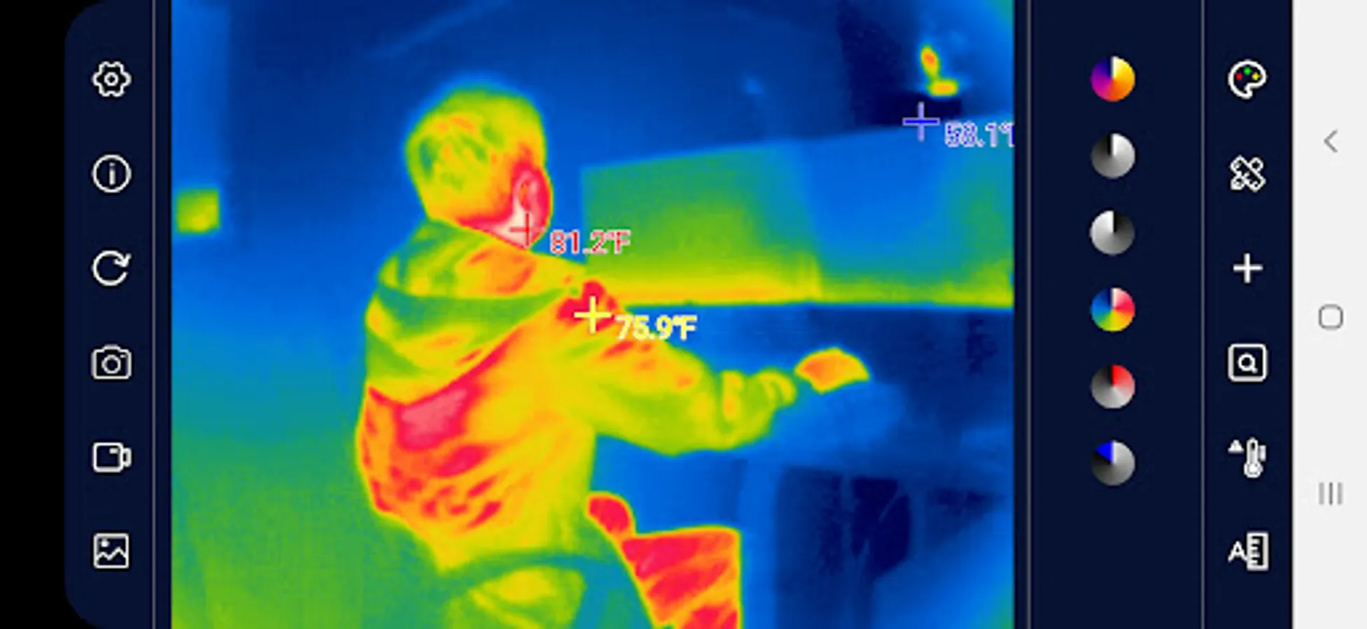 Turn your Smartphone into a professional thermal camera for troubleshooting and inspection, using this app with a TESLONG Thermal Camera series attachment.