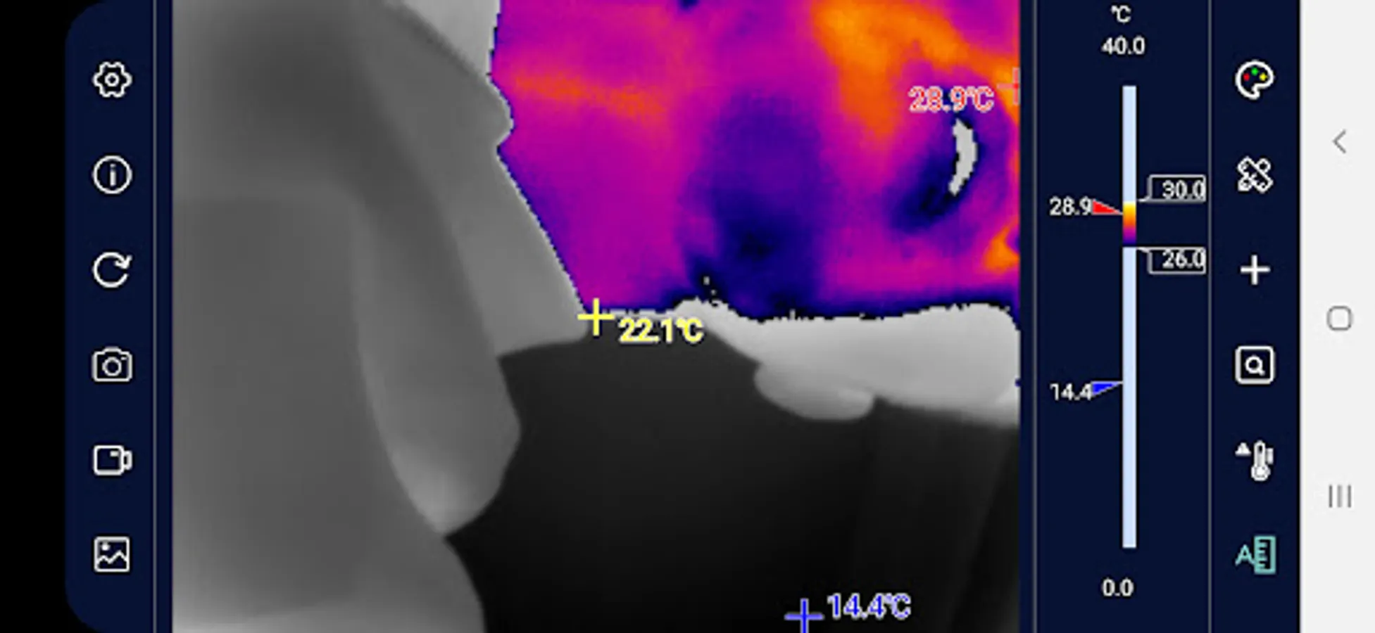 • Scan for faults with the thermal camera view and capture photos and videos to your gallery