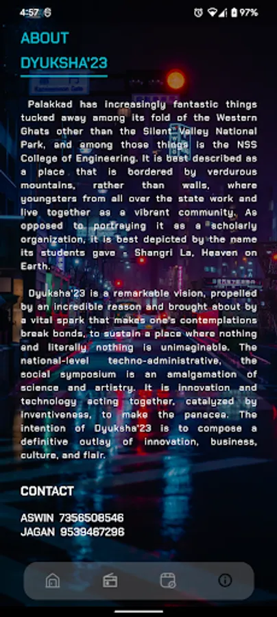 Dyuksha'23 is a remarkable vision, propelled by an incredible reason and brought about by a vital spark that makes one's contemplations break bonds, to sustain a place where nothing and literally nothing is unimaginable. The national-level techno-administrative, the social symposium is an amalgamation of science and artistry. It is innovation and technology acting together, catalyzed by inventiveness, to make the panacea. The intention of Dyuksha'23 is to compose a definitive outlay of innovation, business, culture, and flair.