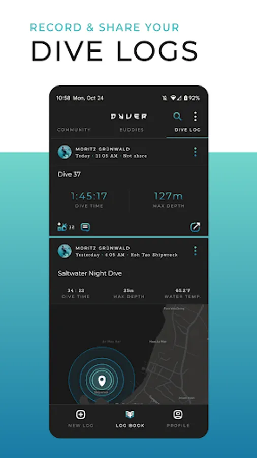 Sharing – Dyver is also a social platform. It allows you to share your epic adventures with your other dive buddies and keep up with their latest dives as well.