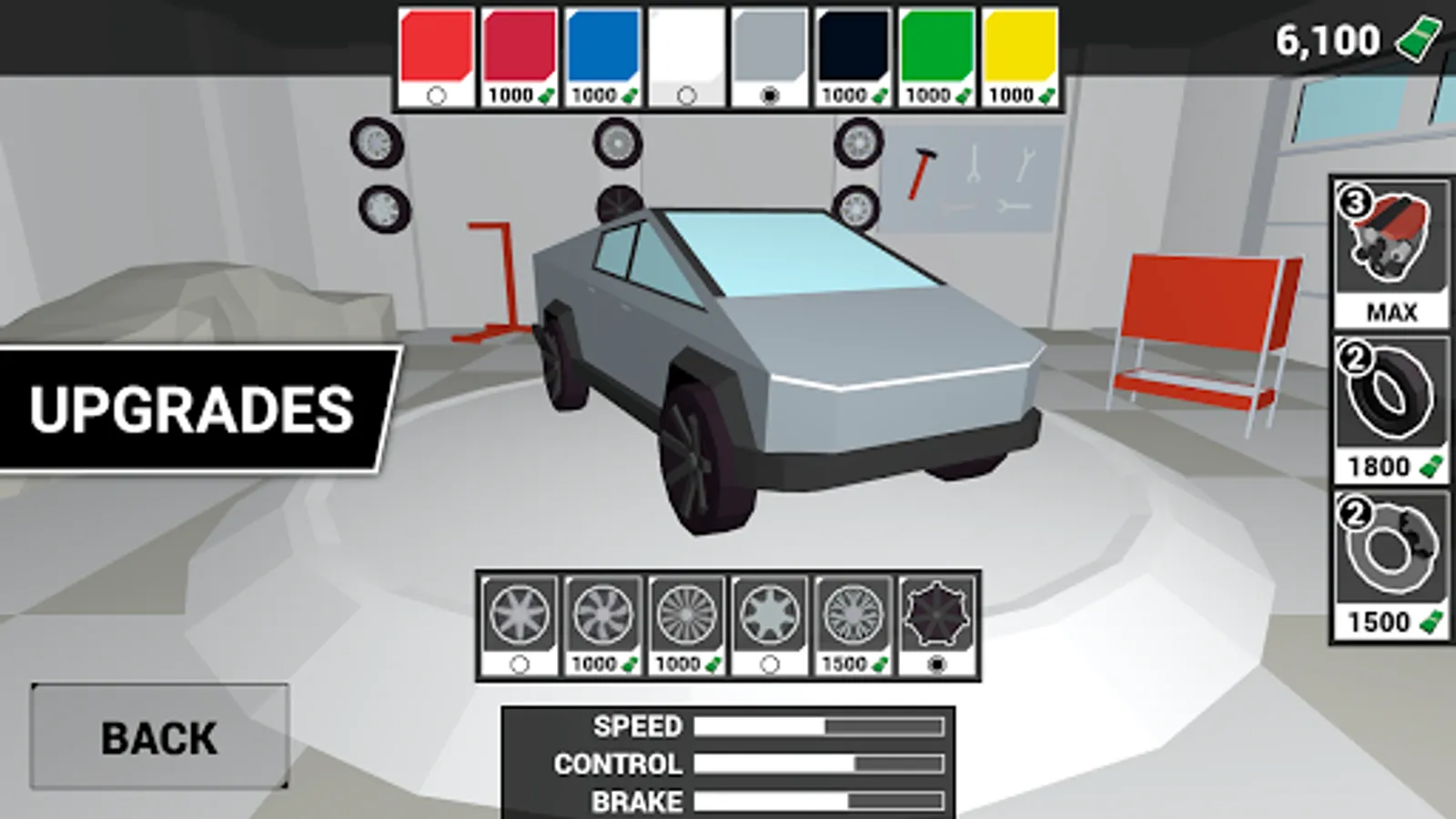 You can buy a new car when earning enough cash, but don't forget to upgrade your current car - it's the fastest way to increase Speed, Control, or Brakes! Also, you can customize your car with new paint or other rims.