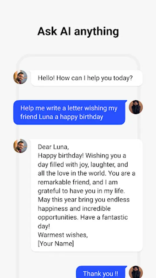 Our app's friendly interface supports context, automatic saving of chat records, and easy copying of chat content for sharing with ease. The app allows you to enjoy an interactive chatting experience like never before and also enables you to grow your knowledge base with its extensive library of information.