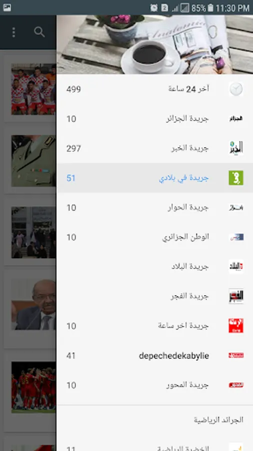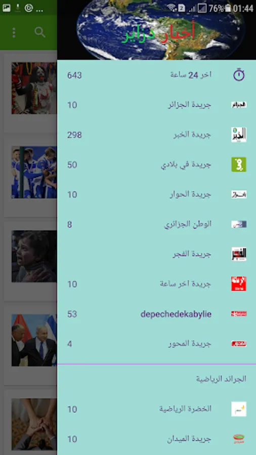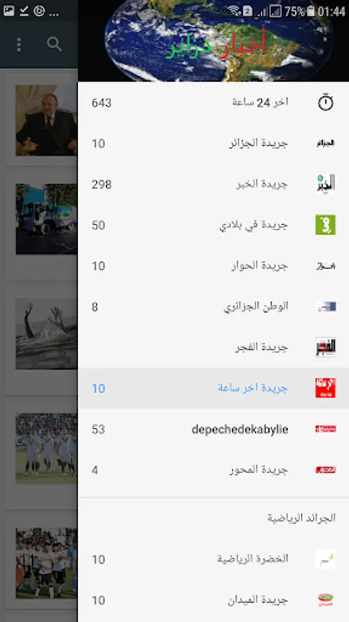 . Application of Algeria News includes El Khabar Dawn Algeria, news, newspaper in my country, the Algerian nation dialogue, dawn, last hour, depeche de kabylie axis sports newspapers such as sports evergreen, field goal, dz foot newspapers and international channels such as Al Jazeera, Al-Arabiya, bbc news in Arabic and English, france24, newspapers will also be added according to your requests