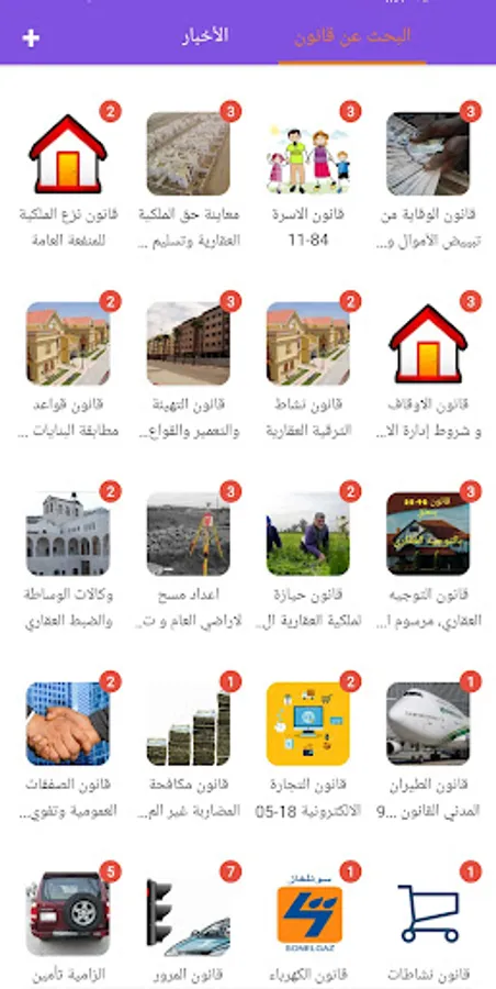 Civil Law, Penal Code, Civil and Administrative Procedures Law, Criminal Procedures, Family, Traffic Law, Road Transport Directive, Compulsory Car Insurance and Traffic Accident Compensation, and some penal laws have been included such as Child Law, Anti-smuggling, Prevention and Control of Corruption, Drug control, prevention of money laundering and terrorist financing and combating it, in addition to some real estate laws such as national properties, real estate directives, agricultural directives, preparation and reconstruction, endowments, preparation of the general land survey and establishment of the real estate registry, real estate promotion activity, expropriation for public benefit,