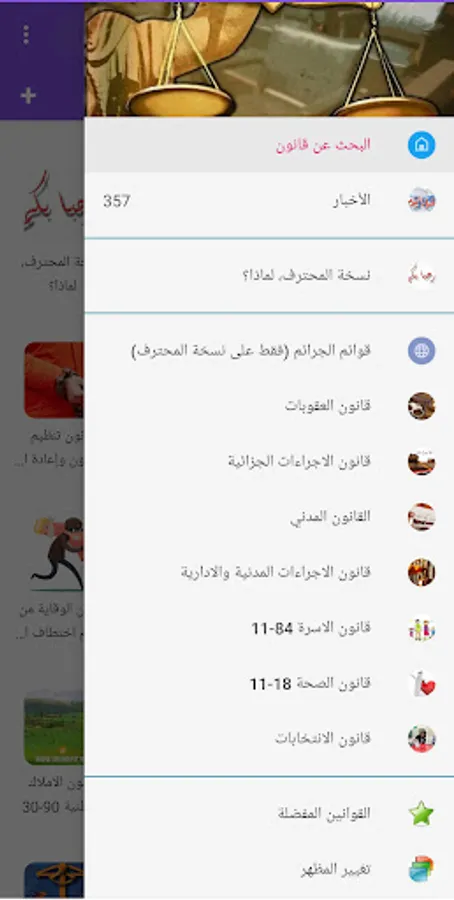 . The application aims to provide the legal material for workers in the justice sector and other sectors, and to deliver the legal text organized and arranged according to its latest amendments to every individual in the community, so that he clearly understands all his rights and obligations.