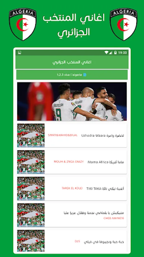 The application of the Algerian national team 2019 after qualifying to the semi-finals of the African Cup 2019 in Egypt