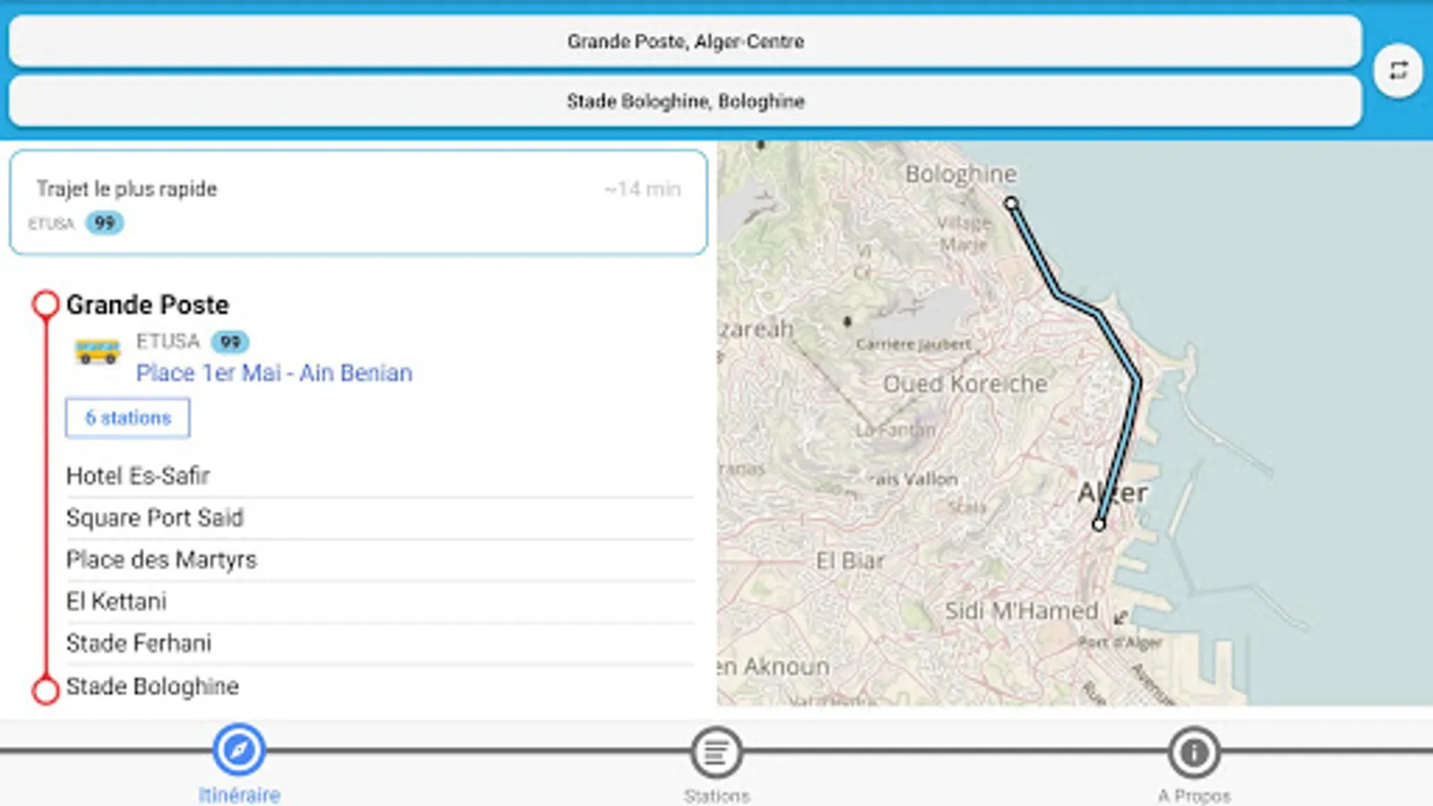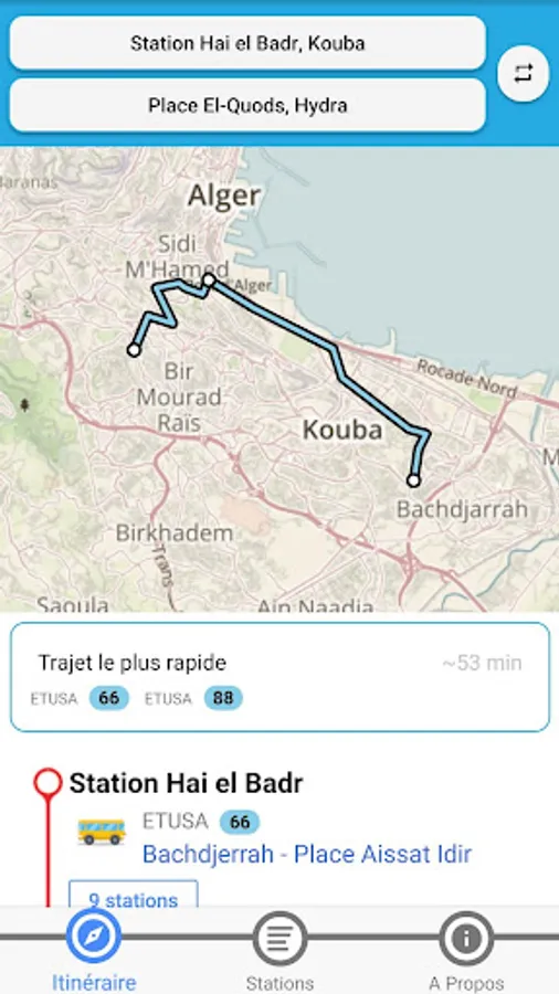 The application Dzair Transport assists you to prepare your routes and better use of public transport in the city of Algiers.