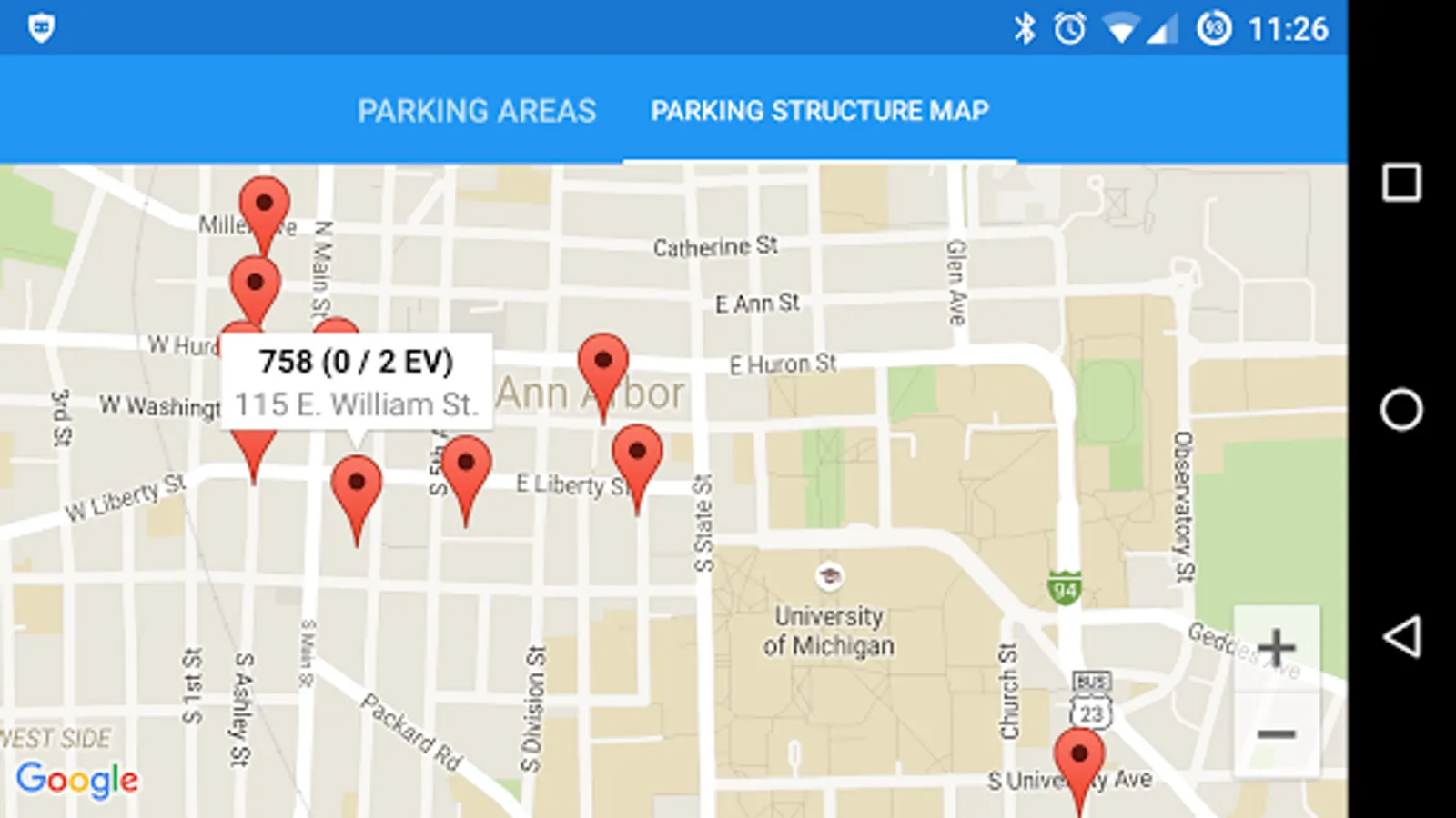 Get realtime parking information on Ann Arbor parking structures, including electric vehicle charging. Currently supports Republic Parking structures only.