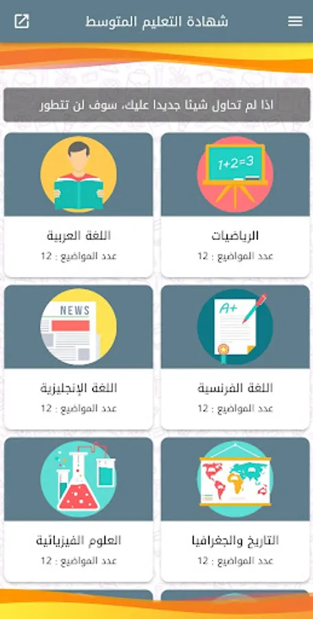 dzexams.com offers you official exam topics with typical correction in addition to a set of homework samples and tests for all subjects for all educational levels prepared by professors from various national schools in order to help the student improve his academic results and raise his educational level in general.