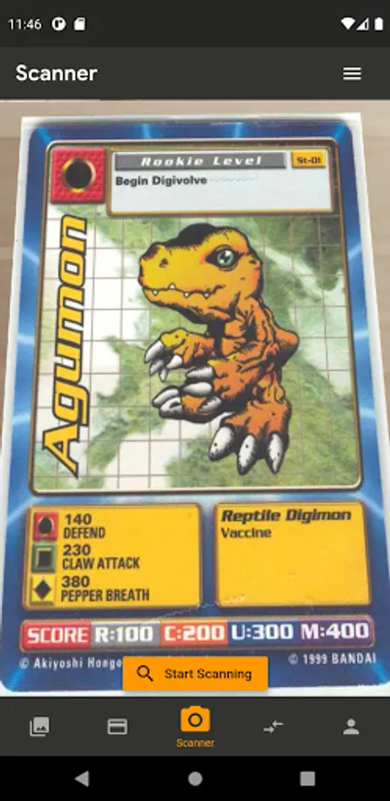 - In the event the App can’t scan the card. You may input the Digimon Card’s ID manually. The Card’s ID is CASE/NUMERCIAL sensitive. How it shows on the Card is the way you input it into DG Card Digital Collection App.