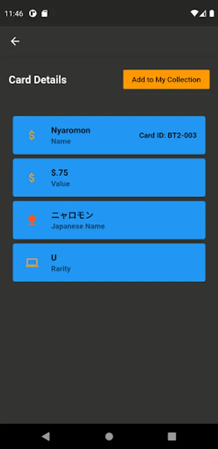 DG-Card will scan the Digimon Card’s ID using your phone’s camera. A scan of the entire card is not necessary just make sure the ID of the card is clear & visible. Once scanned it will prompt a new window which will show the results.