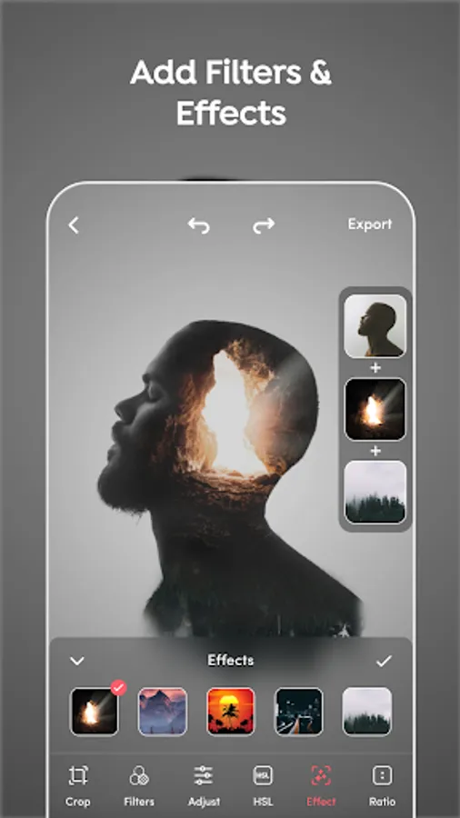 On our app, you can find dozens of image filters, special effects, stickers, and frames, using which you can enhance the image quality and overall outlook. You can edit already saved images in your gallery, or you can personalize new ones in the most professional manner.