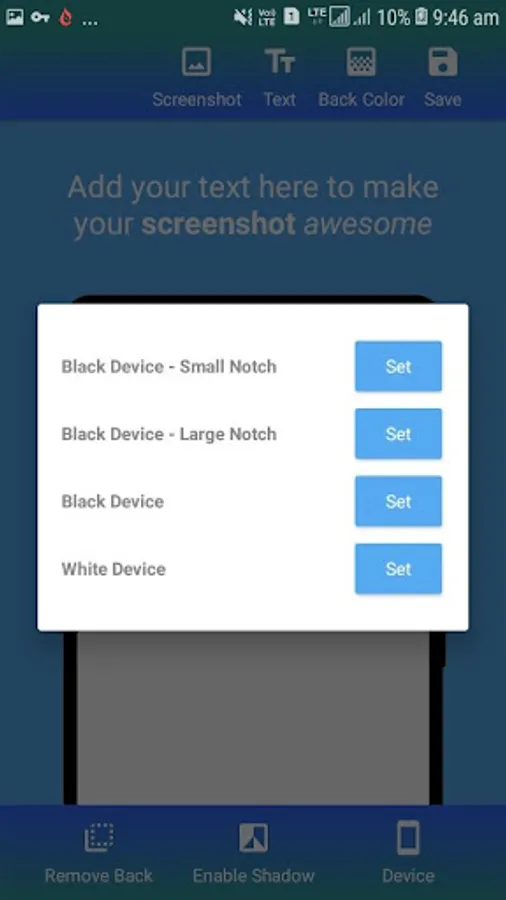 Make your screenshot mockup more beautiful by adding best colors for background. You can also add backgroud image from your gallery