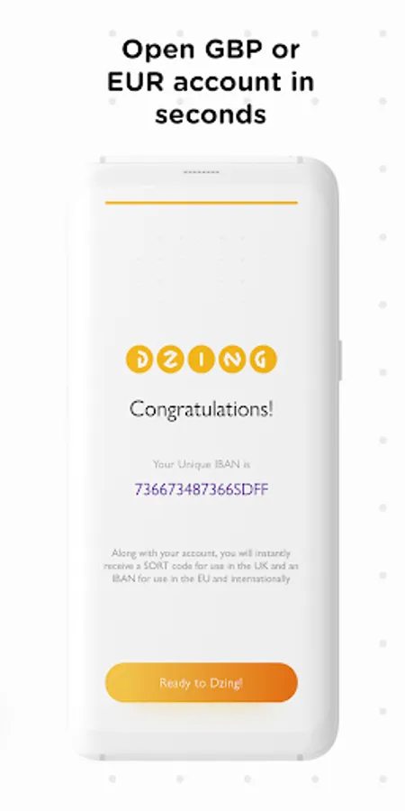 Dzing is a multi-currency financial mobile service, «banking without a bank» for a global lifestyle. To get a UK account, all you need is a smartphone and a couple of minutes. Download the app, complete a short registration, open a GBP or EUR account within one minute, top-up your new bank account quickly and easily. You can order a Mastercard debit card delivered right to your doorstep, and get a virtual card to use both online and offline.