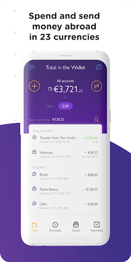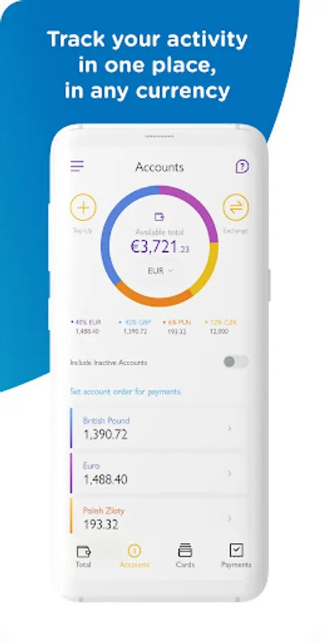 – Get a snapshot of your total balance in different currencies across all of your current accounts.