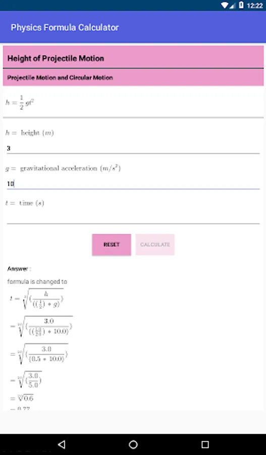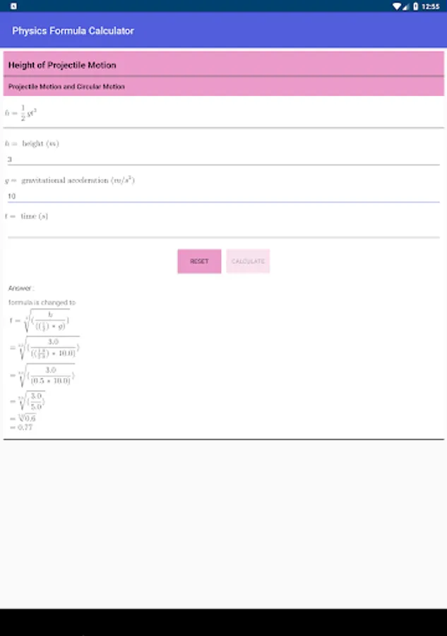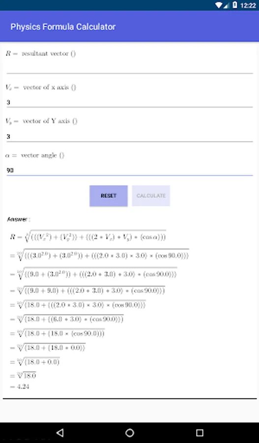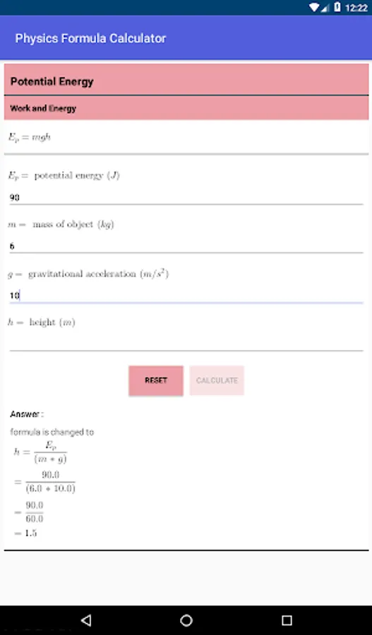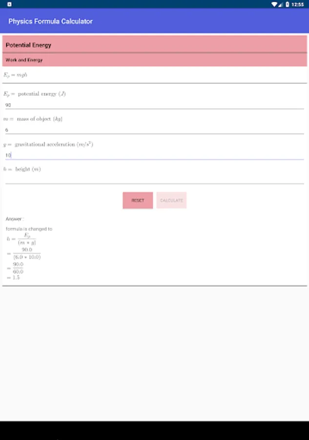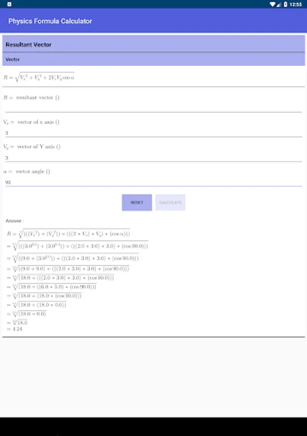 Physics Formula Calculator is a tool to calculate complete physics problems with formulas and steps to solve. This application can also be used for exercises, step comparisons and answers to physics questions.