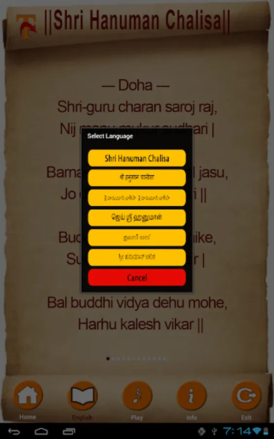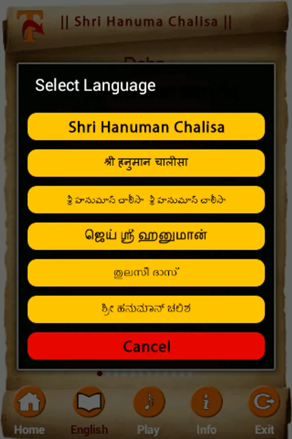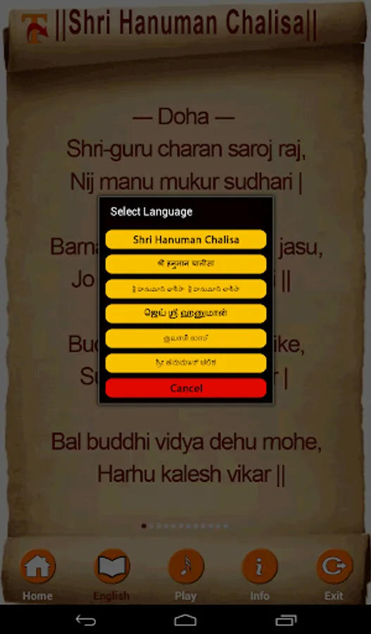 Listen, read and recite hanuman chalisa multiple language with audio sync feature in most popular language.