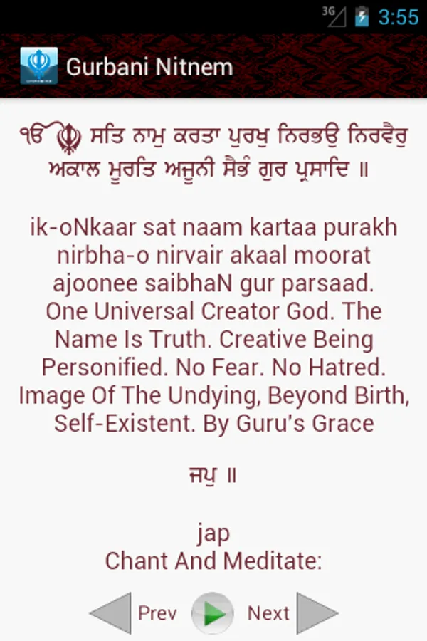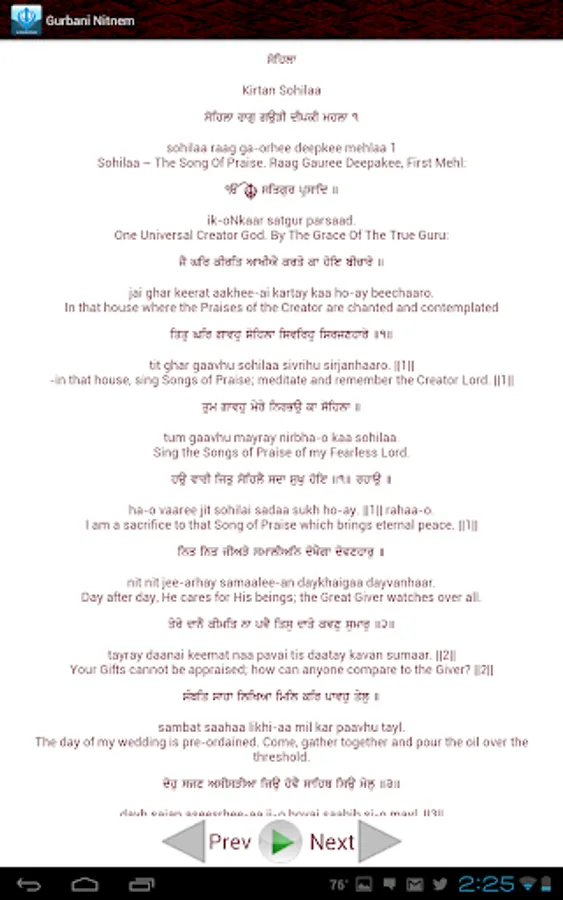 P.S.: We have tried hard to fix the Gurmukhi text as displayed. However, due to hardware compatability issues, certain older Android devices may not display the Gurmukhi text properly.