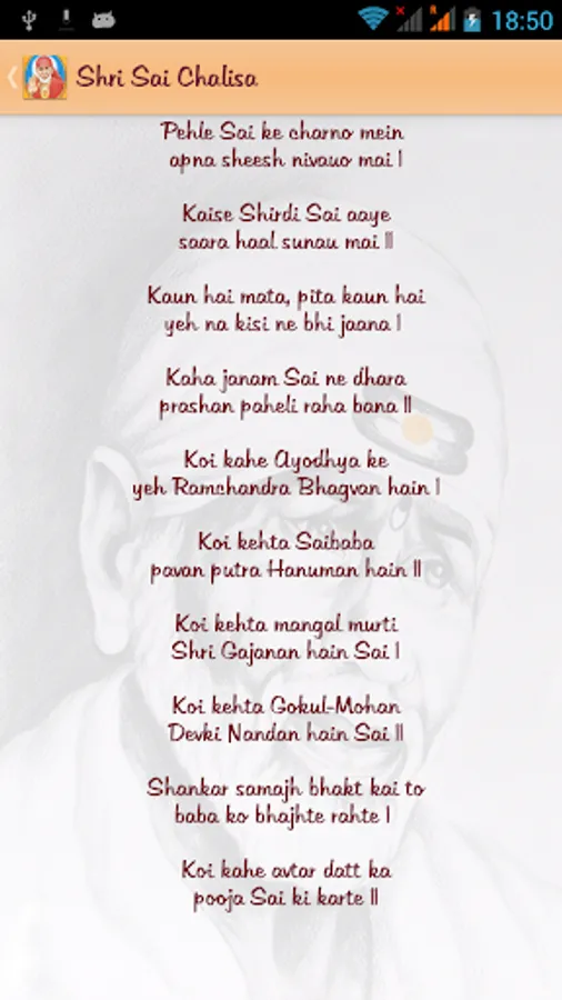 This digitized version of Sai Baba Chalisa and Aarti is our offering to the followers and believers of The Sai Baba of Shirdi ! Sai as he is fondly referred to, was an Indian Guru (teacher,) a Yogi (benevolent servant of God,) and Fakir (a person who gives up worldly possessions to profess the word of Gods!) who is regarded by his devotees as a Saint. Many devout followers Consider Sai Baba as an incarnation of Lord Krishna, while other devotees think of him as an incarnation of Lord Dattatreya.