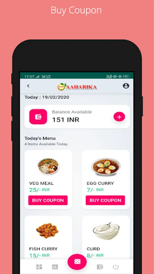 "Aaharika" app allows authorized users to buy eCoupons Online using mobile.