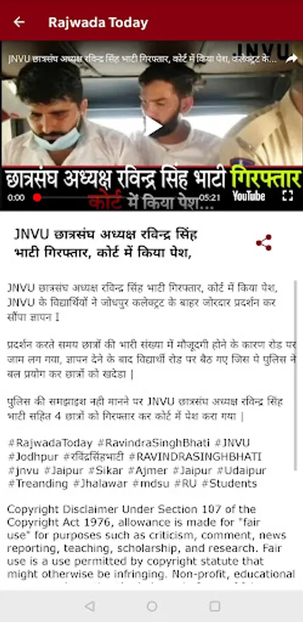 Rajwada Today brings you the latest news and headlines which covers Ajmer, Rajasthan, National and International news. It covers all the news in Hindi through videos and text content. This application keeps you updated on daily basis and provides you fast and real news.