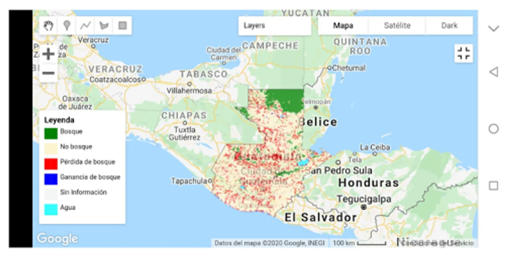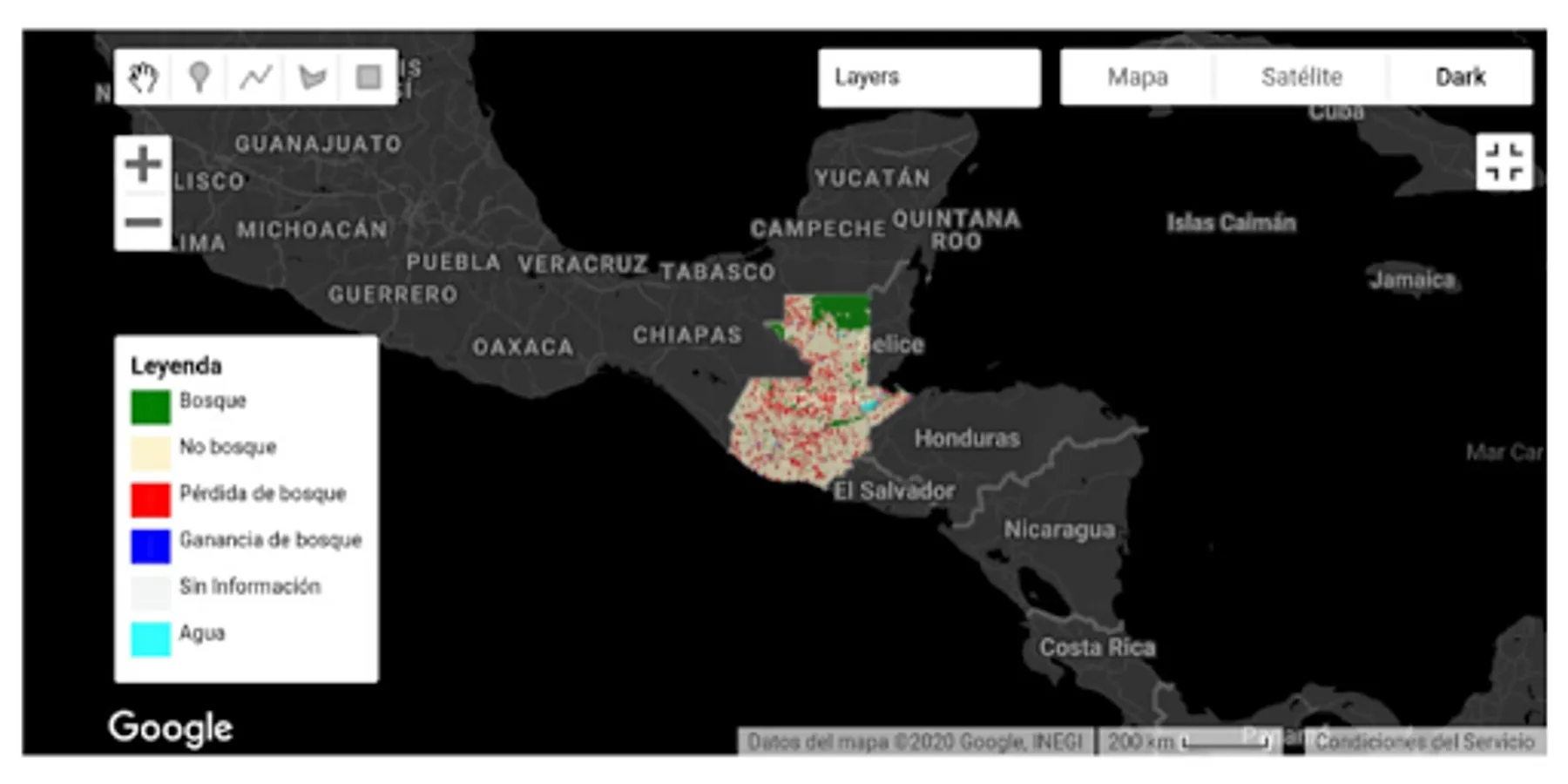 This tool makes available a series of thematic maps of forest cover and forest cover dynamics for monitoring and preventing deforestation and forest degradation in Guatemala.