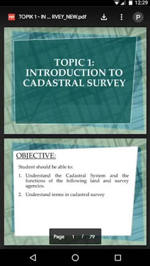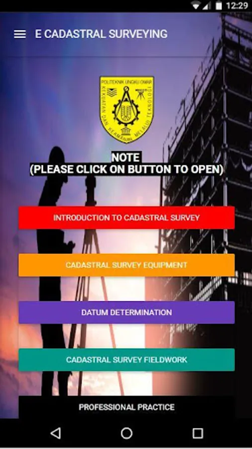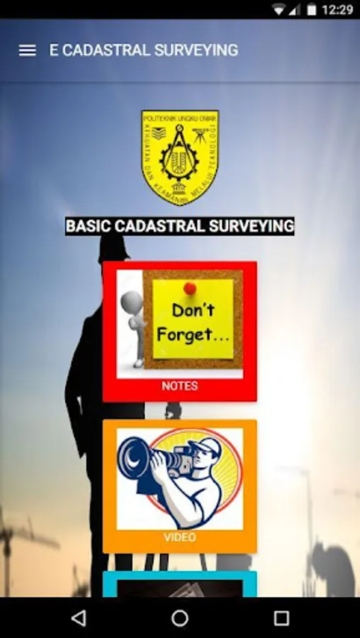 Assalamualaikum dan salam sejahtera ..kami bertiga (Thaqif, Aidil, Irfan) dari seksyen DGU 5A telah membuat projek Topical Studies sesi ini. Kami membuat inovasi berkaitan Kursus Cadastral Surveying iaitu nota yang sedia ada digantikan dengan nota dalam bentuk peta minda dan procedure kerja padang dalam bentuk video untuk semester 4 sahaja.Bagi semester 1 dan 3 pula nota juga dimasukkan kedalam Aplikasi ini.