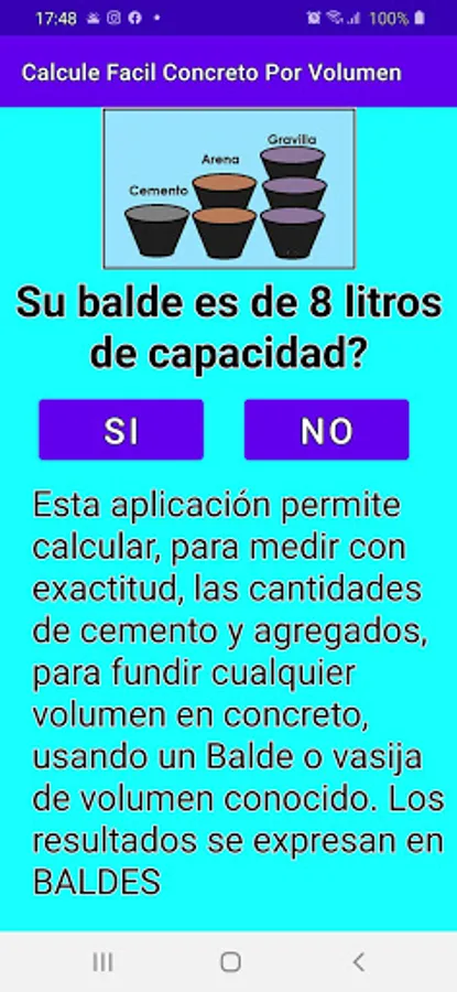 Save money represented in labor and materials because you can calculate, to measure accurately, the quantities of cement and aggregates, to melt any volume in concrete, using a Bucket or vessel of known volume. The results are expressed in BALDES.