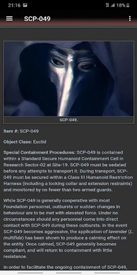 // This application is intended to view materials presented on the above sites! The application is not a product of the SCP Foundation. It does not process or publish materials on the organization’s websites. This application is only a convenient tool for viewing materials!)