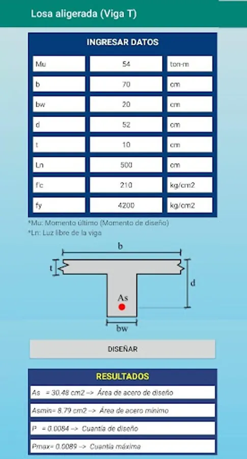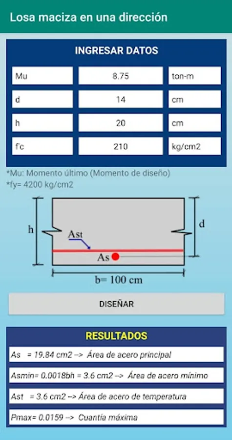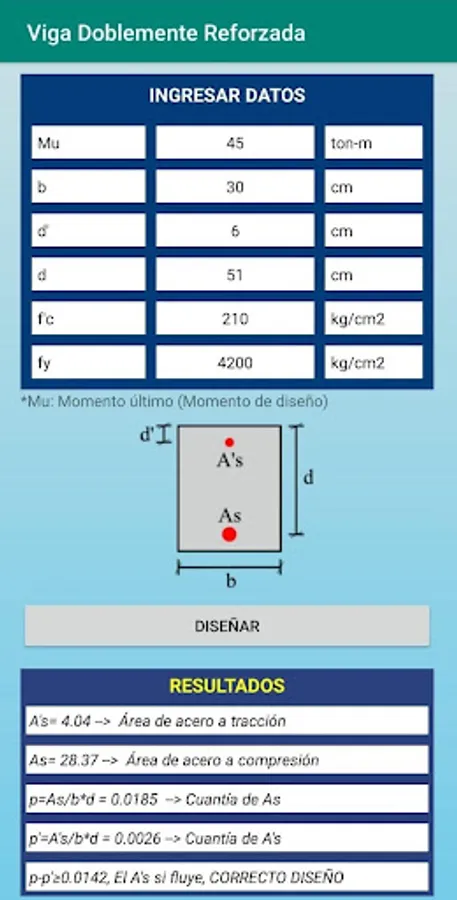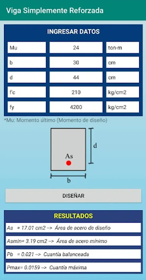 This application (Design in reinforced concrete - reinforced concrete) is a useful tool to design an element of reinforced concrete, in addition to containing theoretical concepts and practical design exercises, which will allow the user to have full control of the design methodology used in the application.