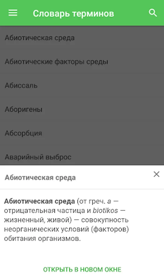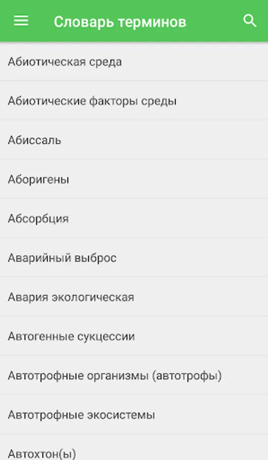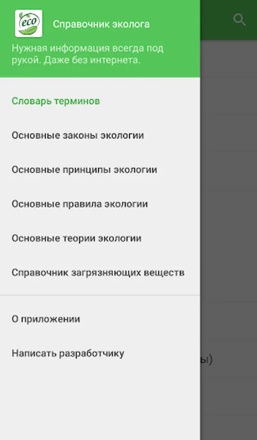 Offline guide to ecology. The appendix contains terms from the field of ecology, a list of more than 2400 air pollutants.