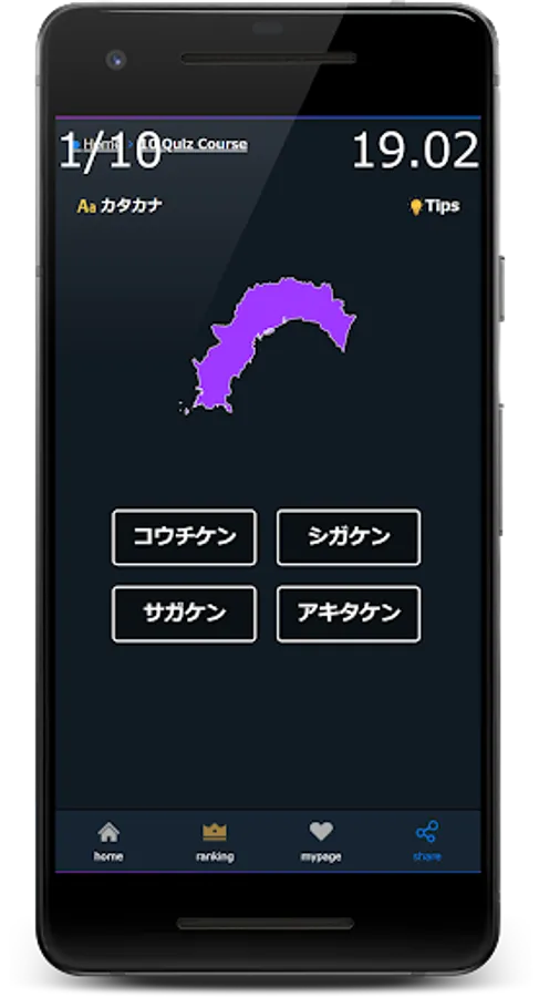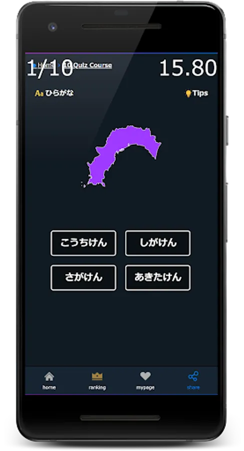 This is just a simple quiz app to guess the prefecture.However, we developed this app with the aim of making it so that if you just keep pushing and doing time attacks, you will naturally remember the shapes of the prefectures.