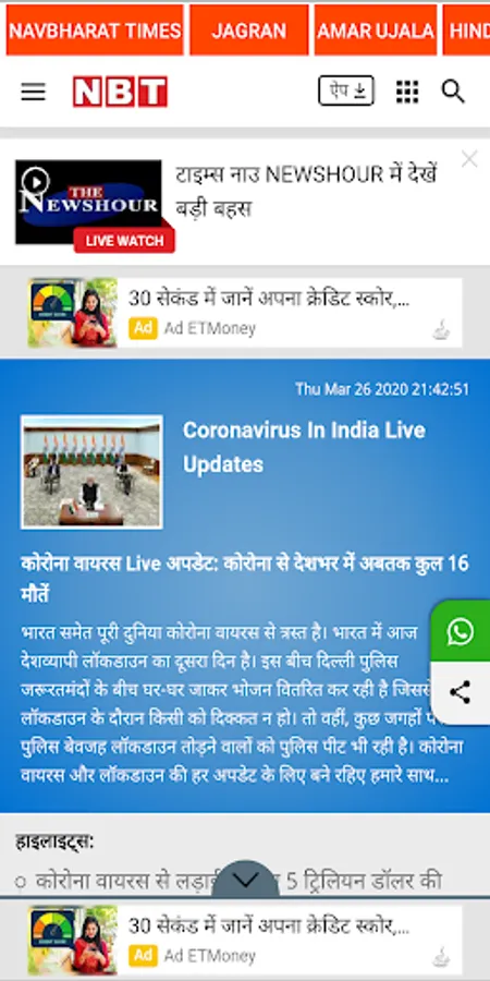 Latest News are from multiple News Channel like AajTak, Zee, ABP , Jagran news, Navbharat times, Times of India, CNBC awaz, Zee business, Prabhat khabar, Panjab keshri in this APP.